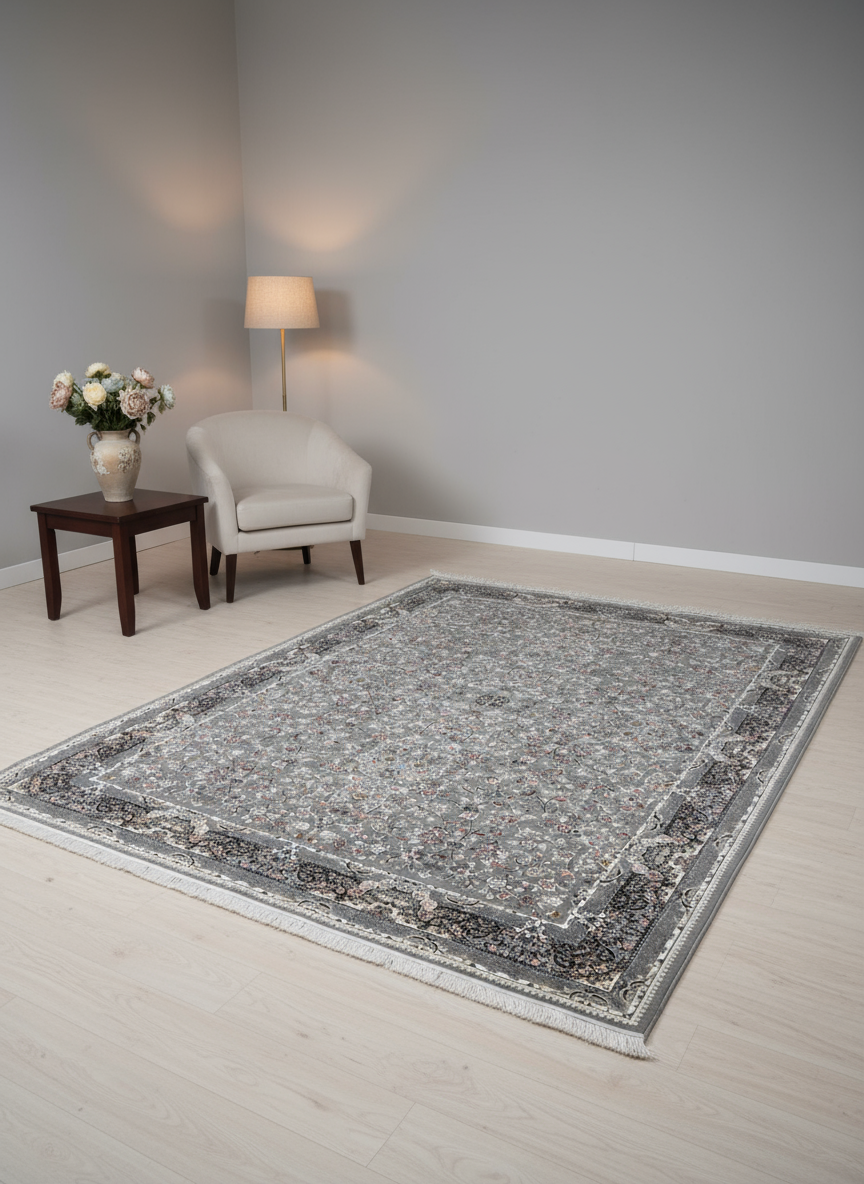 فرش ماشینی 1200 شانه اصل نقشه افشان وینتیج نقره ای متالیک