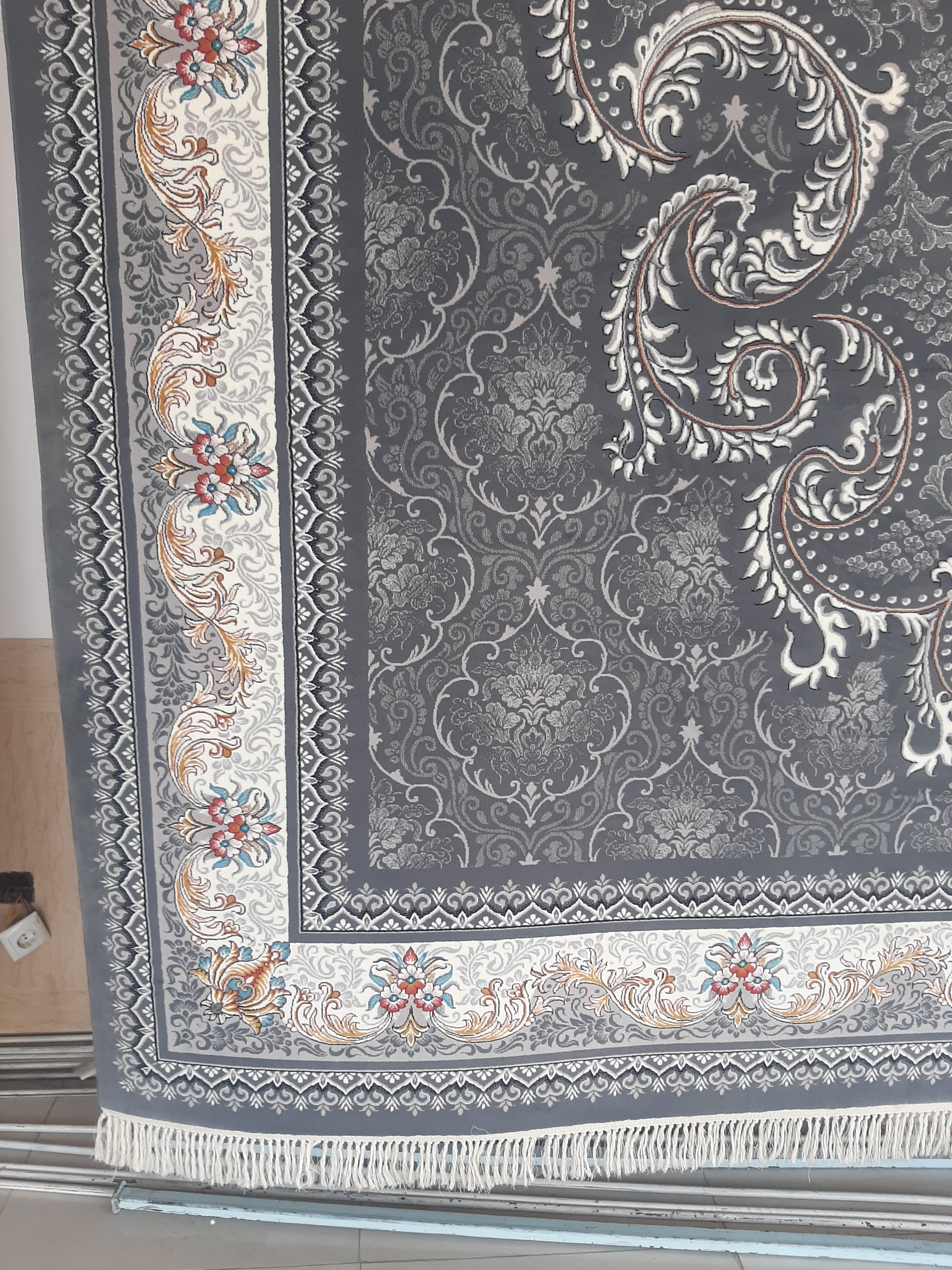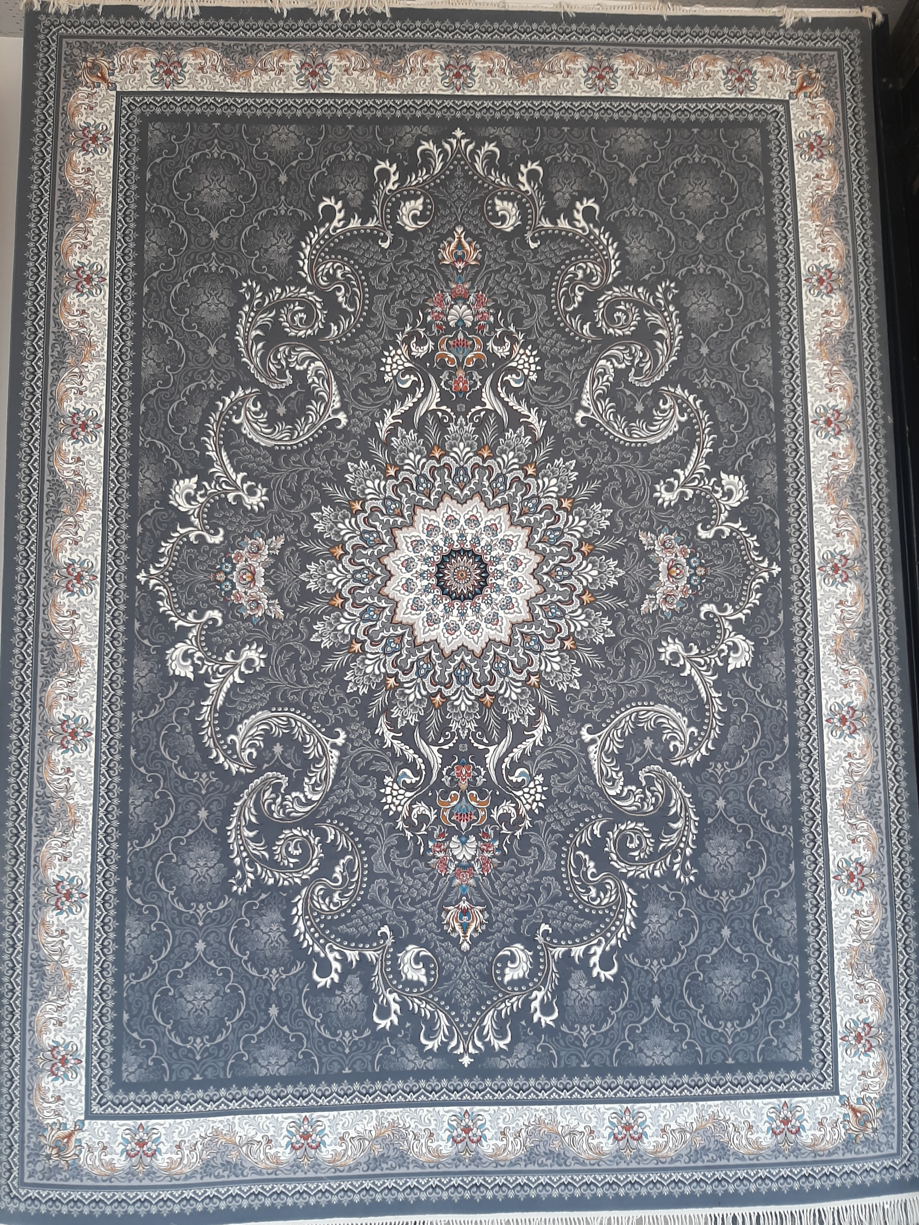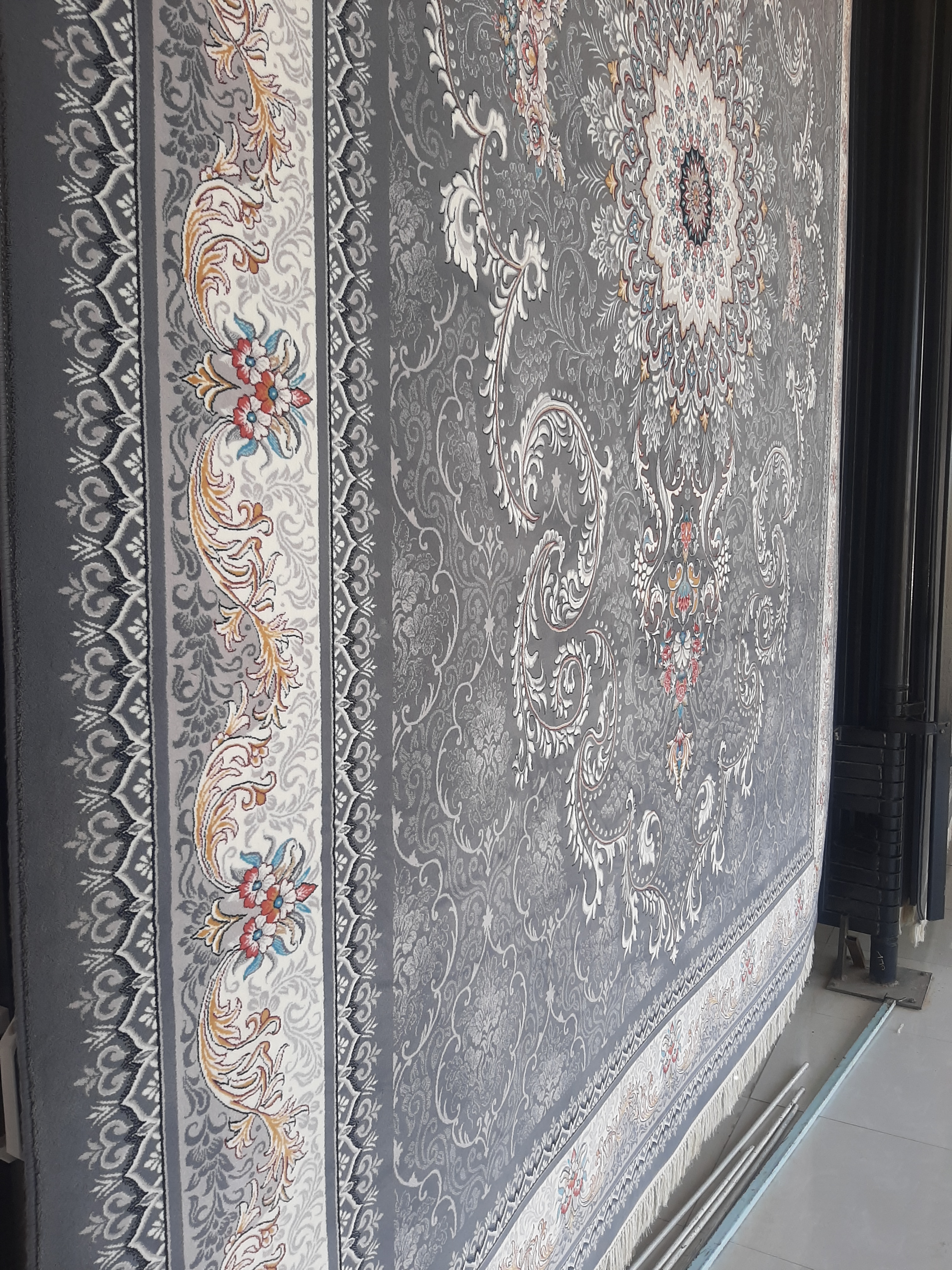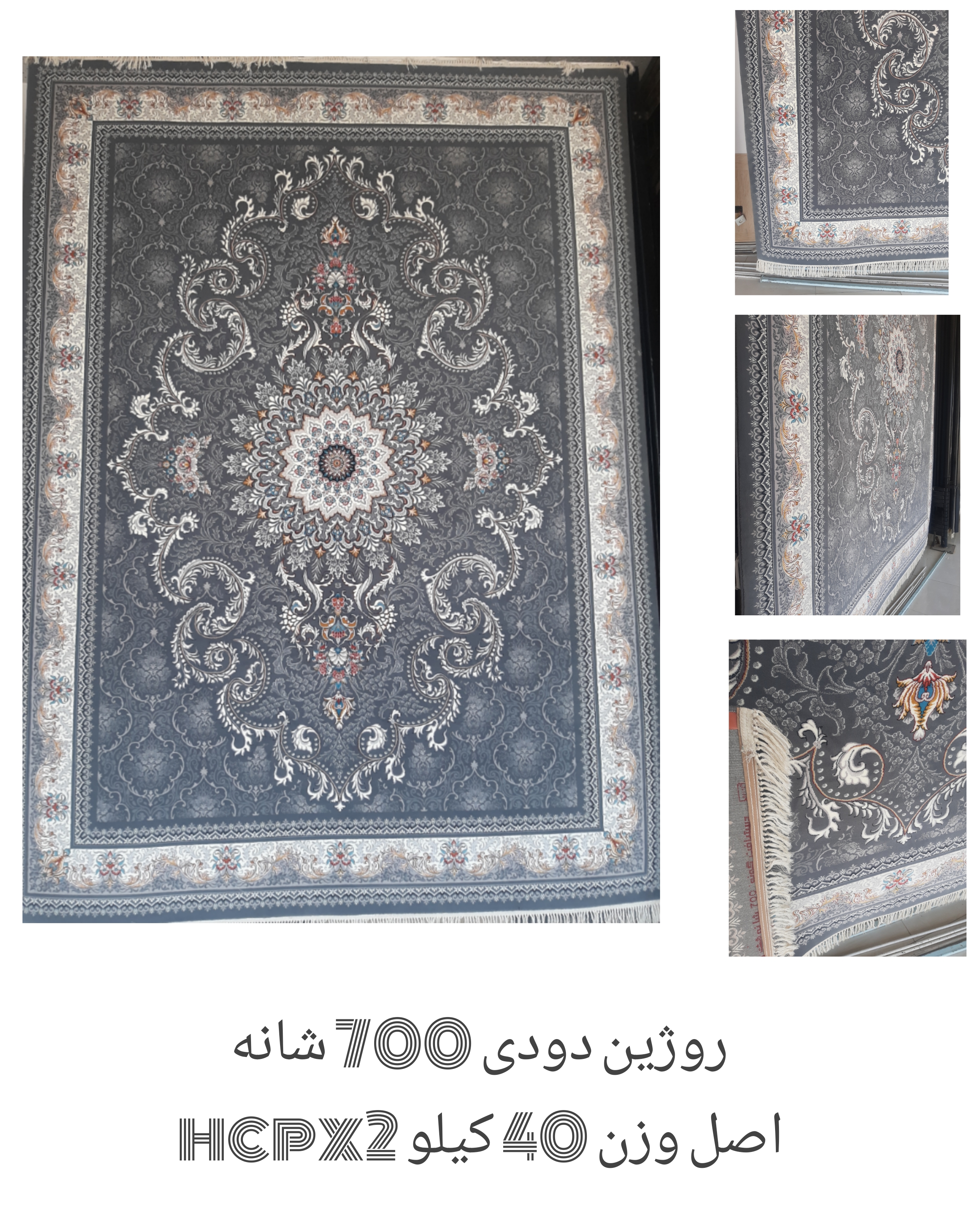 فرش ماشینی ۷۰۰ شانه اصل، نقشه روژین دودی، تراکم ۲۵۵۰ هشت رنگ، صددرصد نخ اکرولیک هیت ست شده با ۶۰ ماه ضمانت کیفیت و ضمانت مرجوعی کیفیت، بسیار باکیفیت، وزن ۱۲ متری محصول ۴۰ کیلوگرم می باشد. با ضمانت اتوی داغ، بافت hcpx2 رنگ متنوع زمینه، فیلی - دودی - سرمه ای، ارسال پس کرایه