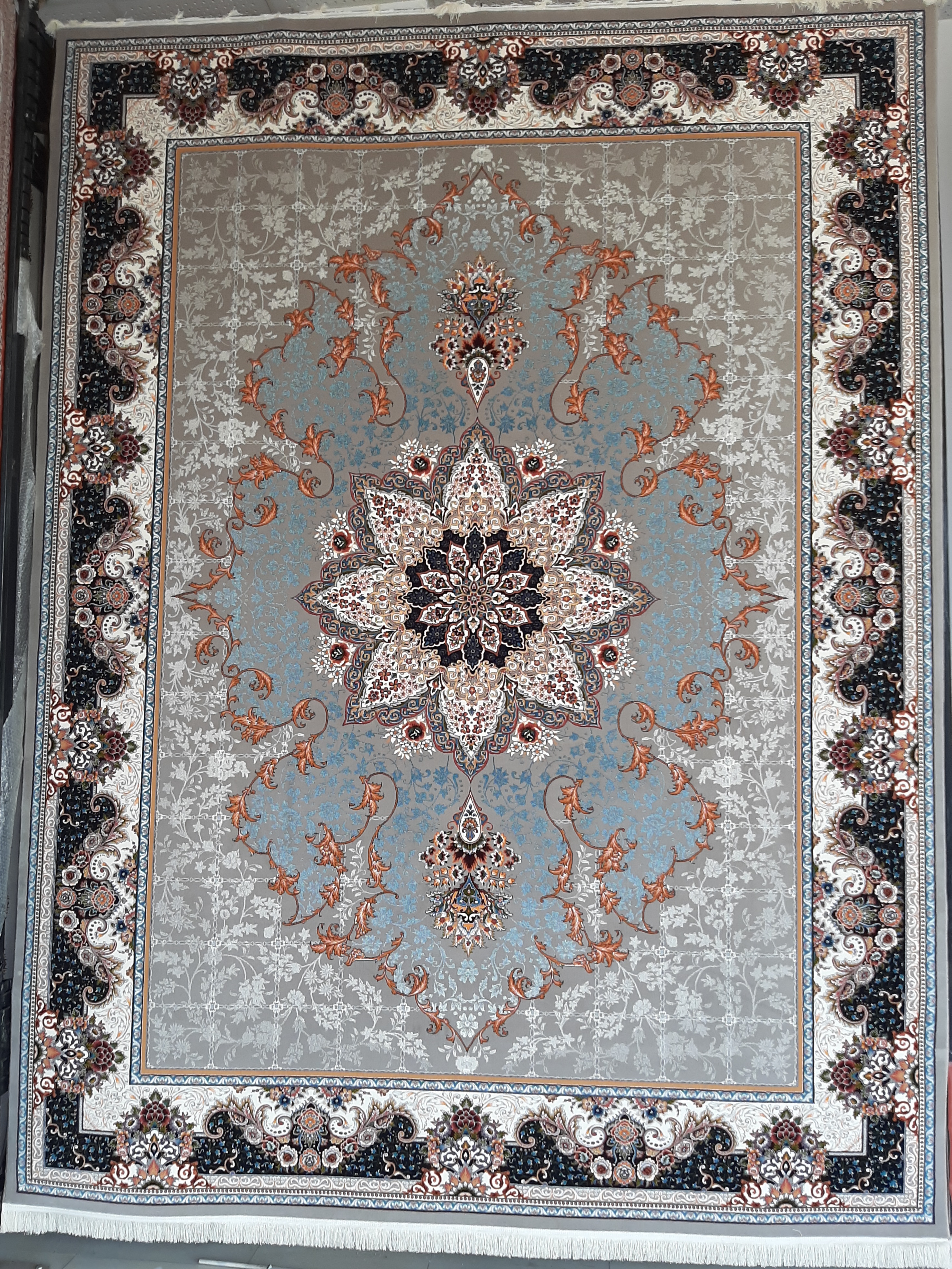 فرش ماشینی ۷۰۰ شانه اصل تراکم ۲۵۵۰ هشت رنگ، نقشه هیوا زمینه فیلی، صددرصد نخ اکرولیک هیت ست شده با ۶۰ ماه ضمانت کیفیت و ضمانت مرجوعی کیفیت، بسیار باکیفیت، وزن ۱۲ متری محصول ۴۰ کیلوگرم می باشد. با ضمانت اتوی داغ، بافت در رنگ زمینه فیلی، سرمه ای، کرم، ارسال پس کرایه
