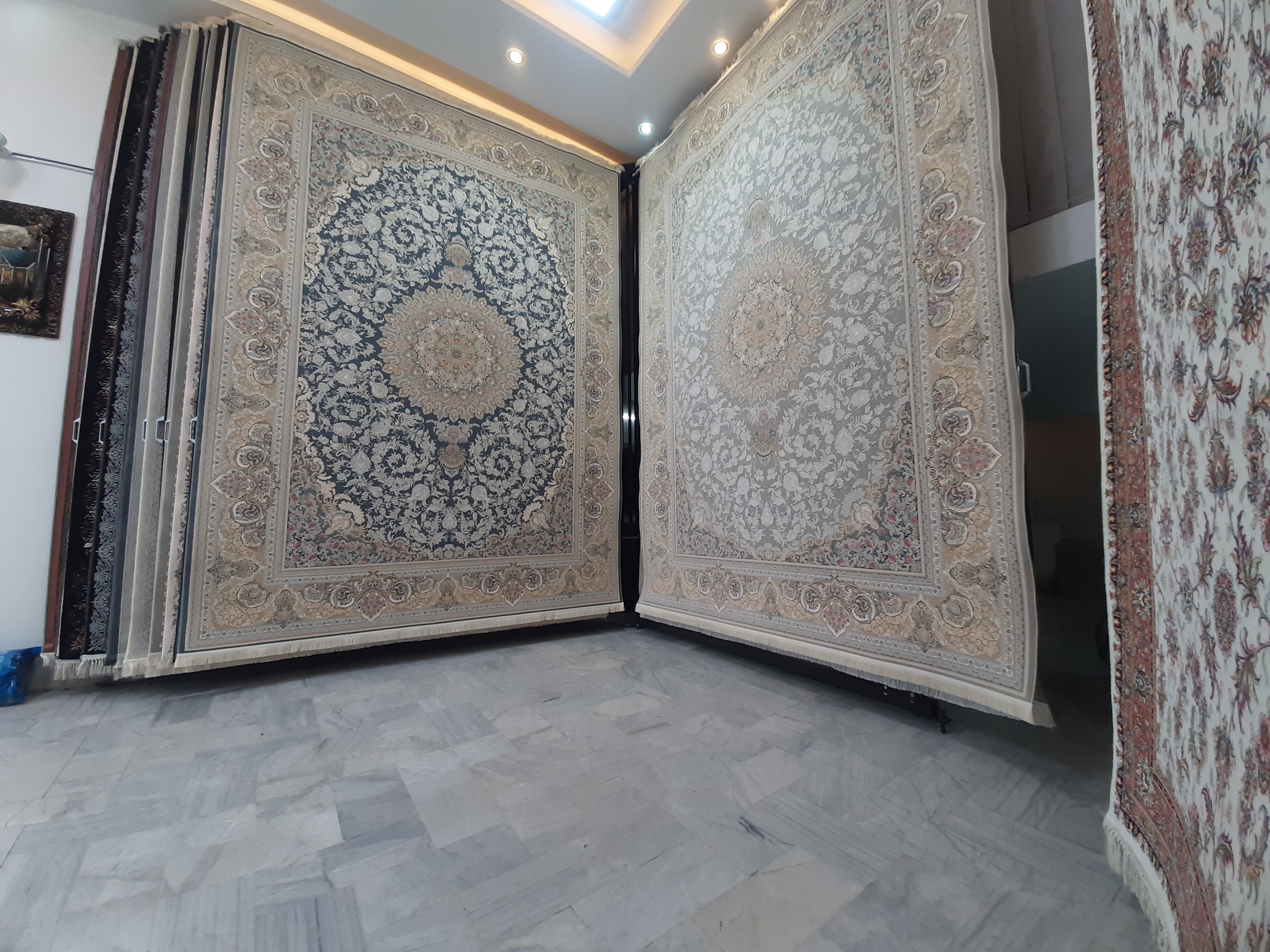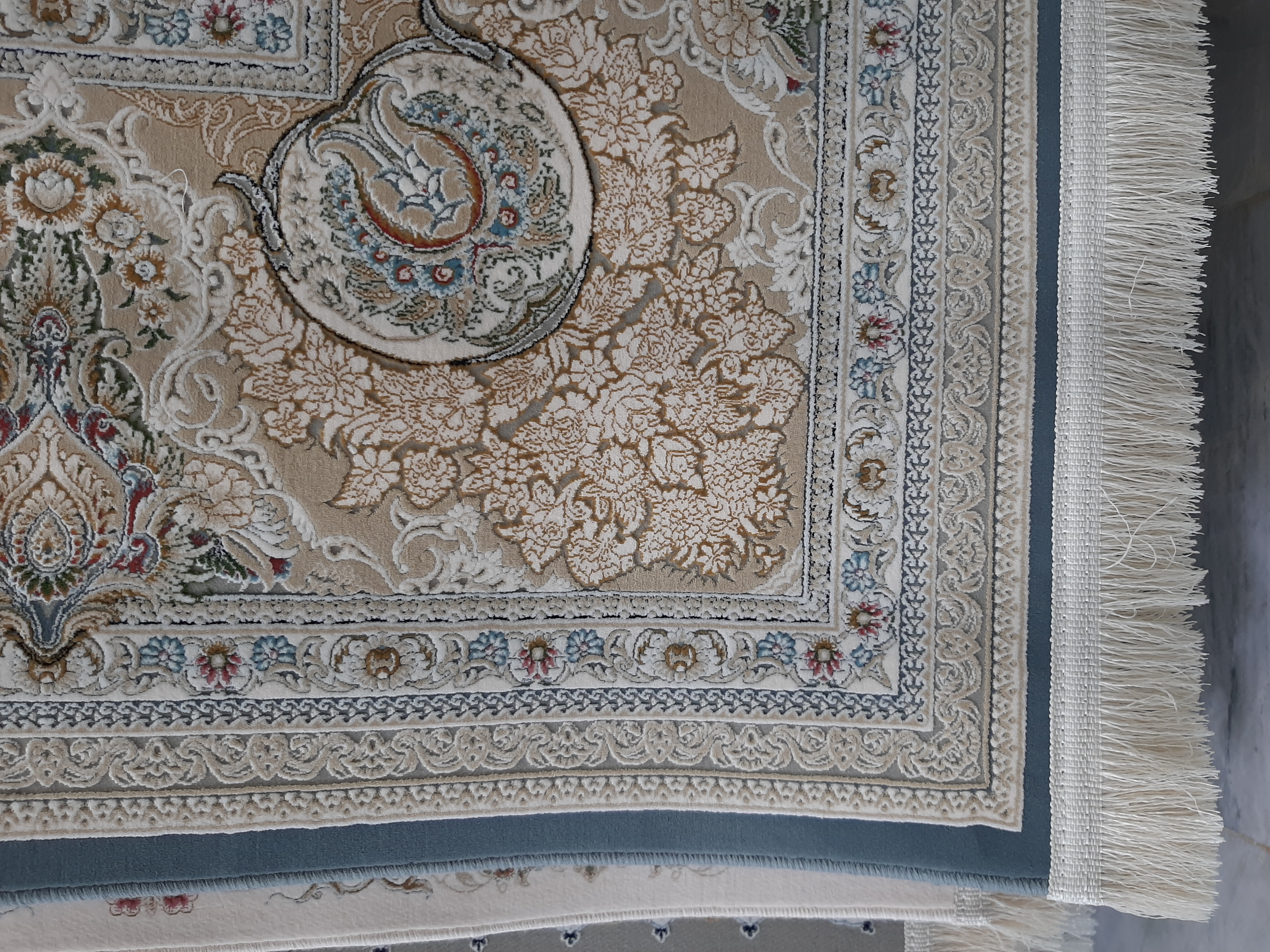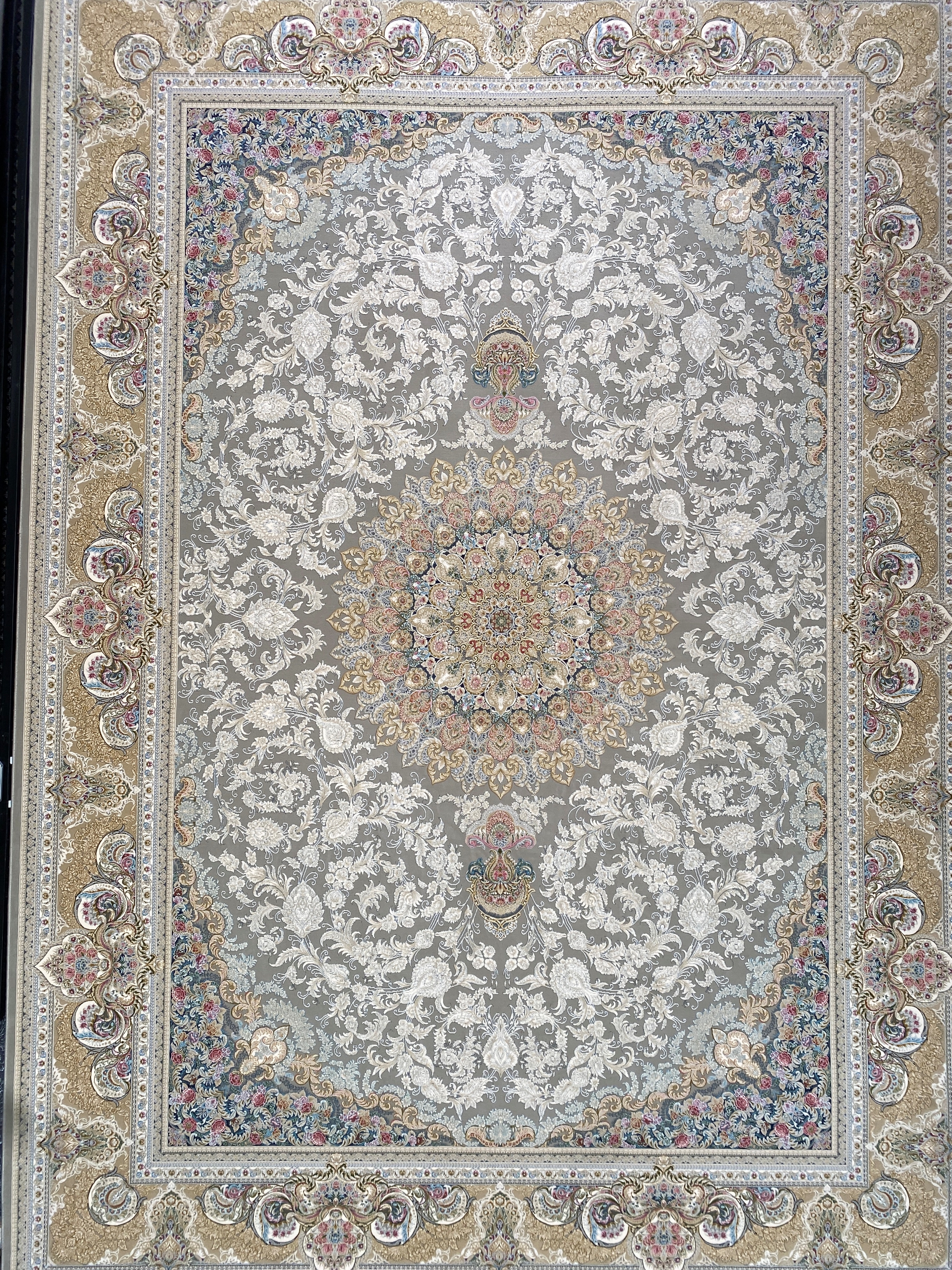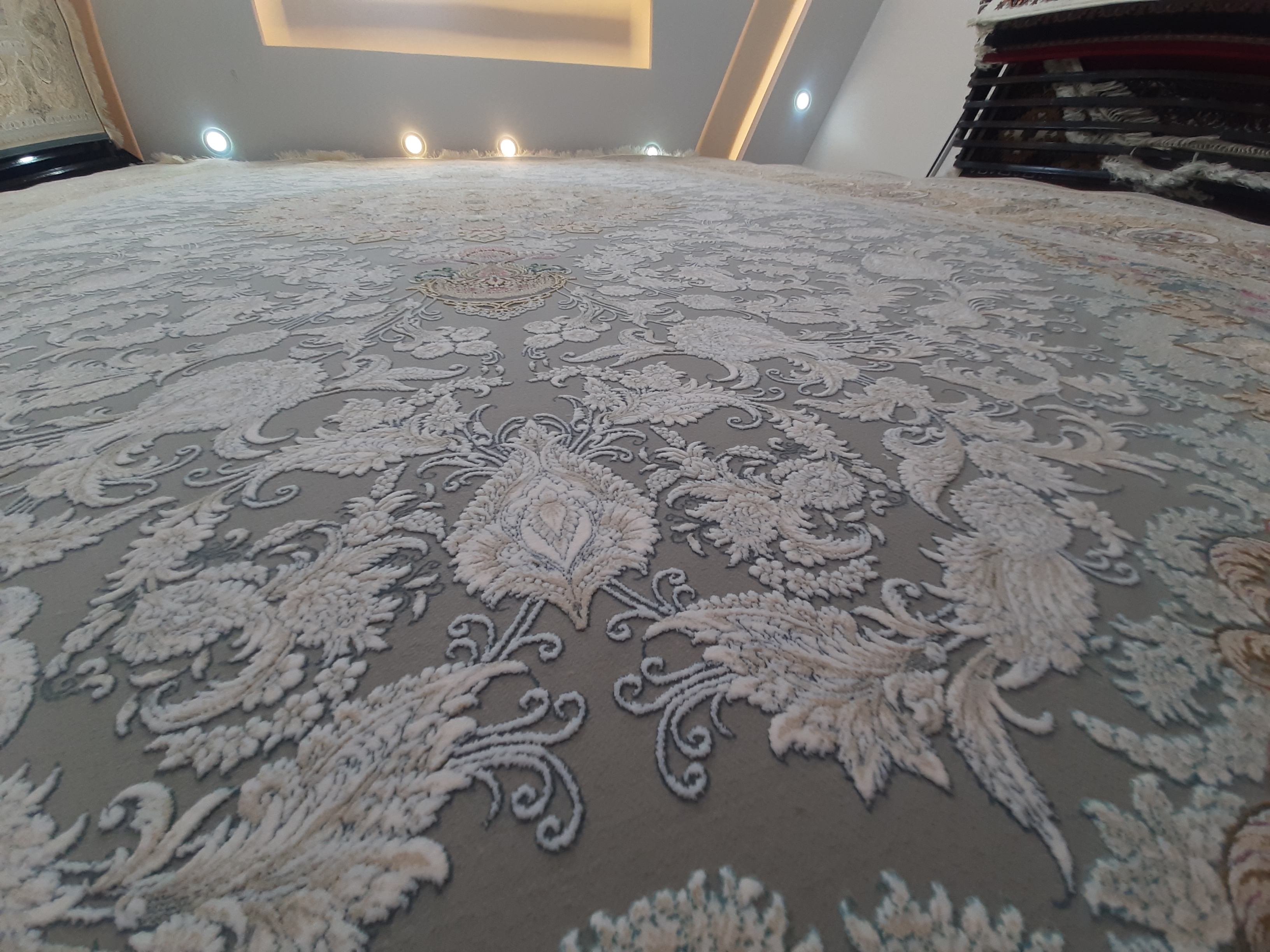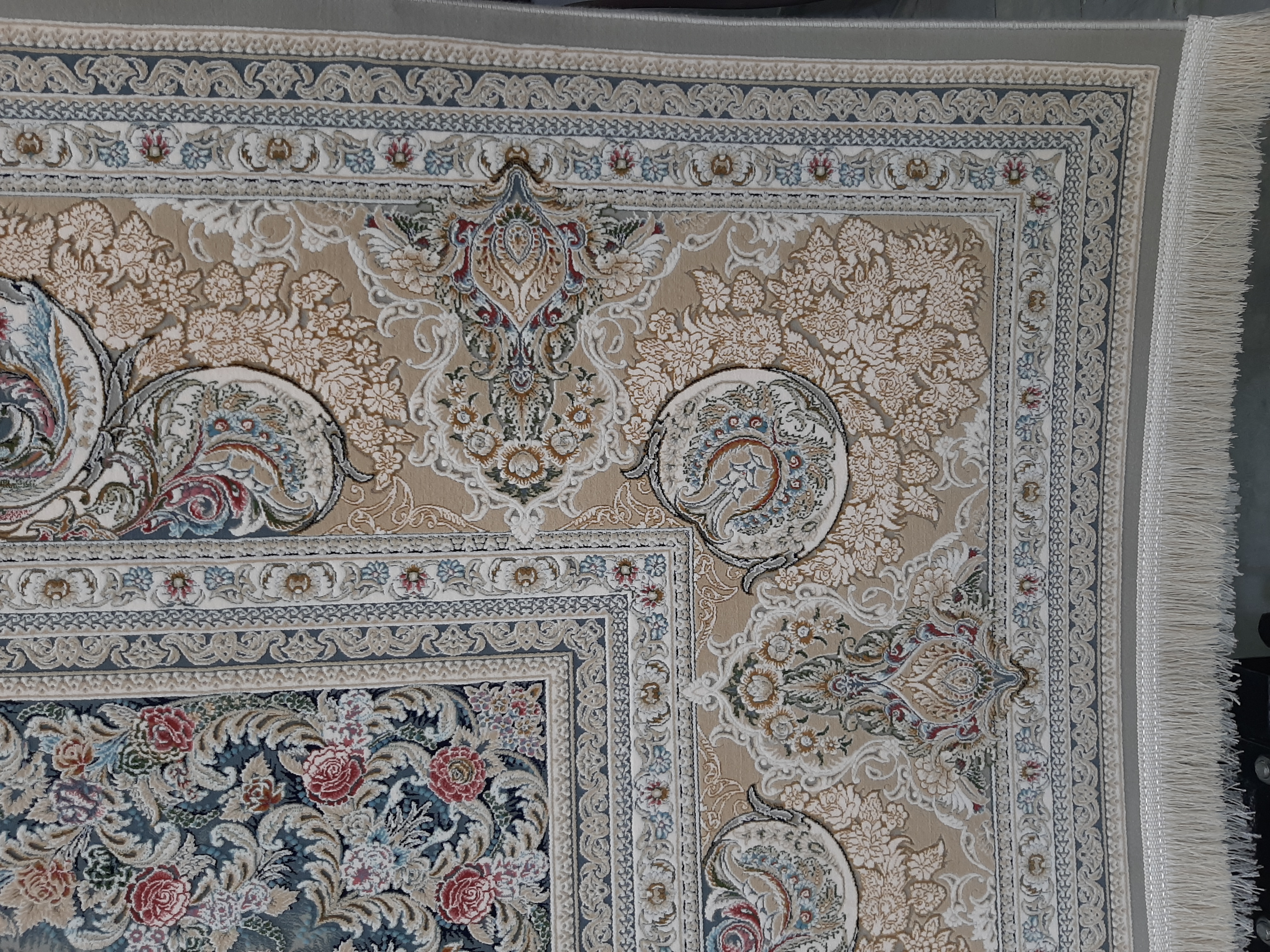 فرش ماشینی 1500 شانه اصل تراکم 4500 برجسته، اورجینال 10 رنگ، نقشه لیانا کد 8802 ، صددرصد نخ ترک با ۶۰ ماه ضمانت کیفیت و ضمانت مرجوعی کیفیت، بسیار باکیفیت، بافت با رنگ های متنوع زمینه، کرم، نقره ای، سرمه ای - دلفینی، ارسال پس کرایه