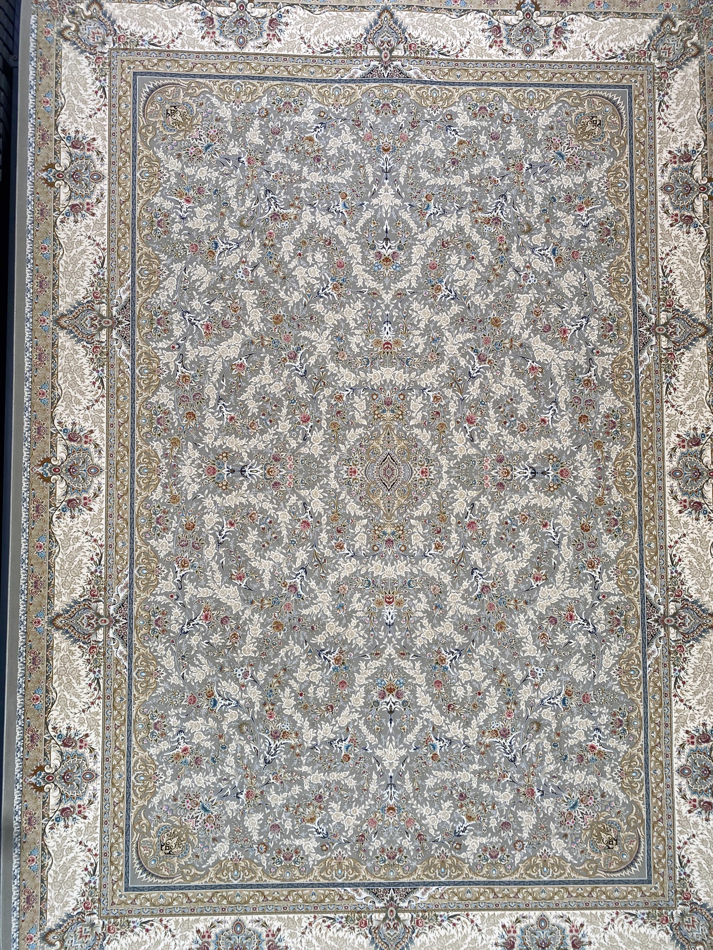 فرش ماشینی 1500 شانه اصل تراکم 4500 برجسته، اورجینال 10 رنگ، نقشه کد 8803 ، صددرصد نخ ترک با ۶۰ ماه ضمانت کیفیت و ضمانت مرجوعی کیفیت، بسیار باکیفیت، بافت با رنگ های متنوع زمینه، نقره ای - دلفینی - کرم - سرمه ای ، ارسال رایگان تا باربری شهر مقصد