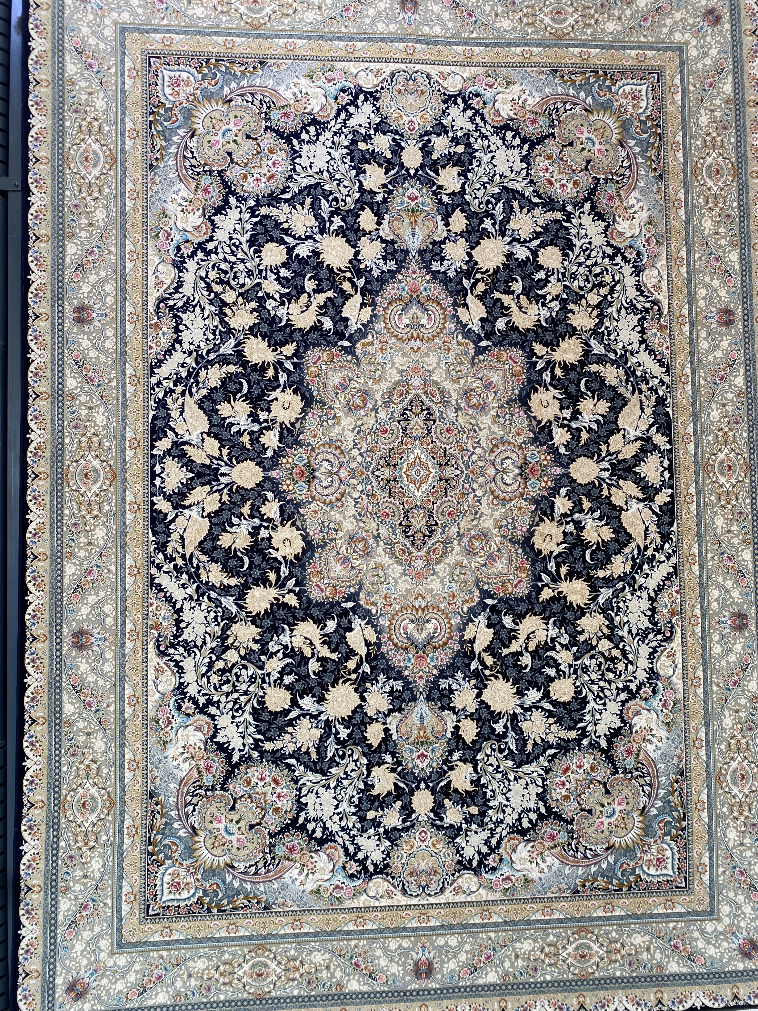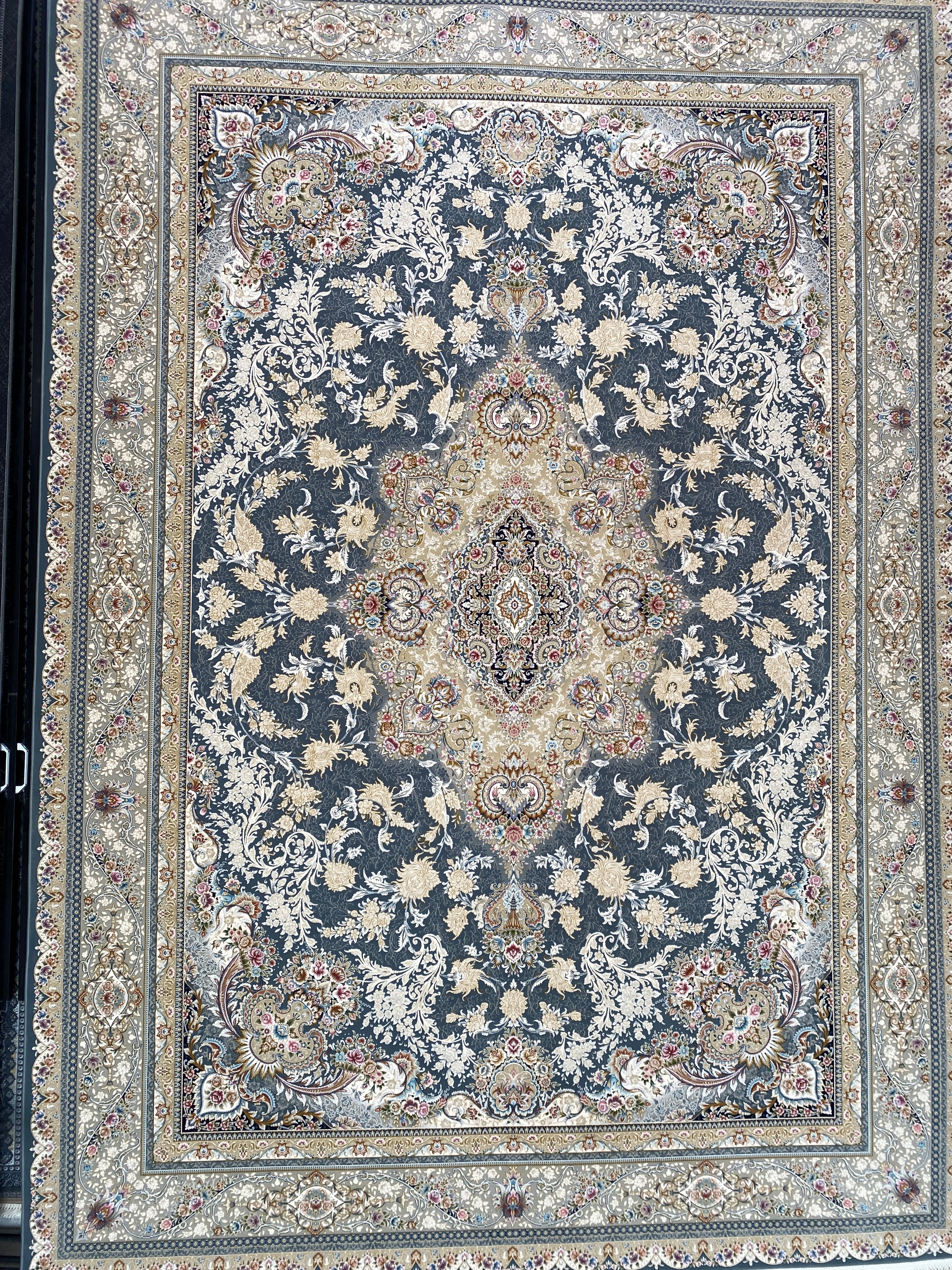 فرش ماشینی 1500 شانه اصل تراکم 4500 برجسته، اورجینال 10 رنگ، نقشه کد 8805 ، صددرصد نخ ترک با ۶۰ ماه ضمانت کیفیت و ضمانت مرجوعی کیفیت، بسیار باکیفیت، بافت با رنگ های متنوع زمینه، مشکی سرمه ای- نقره ای - دلفینی، ارسال پس کرایه