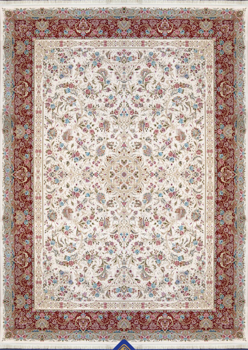 فرش ماشینی 1500 شانه اصل تراکم 4500 برجسته، اورجینال 10 رنگ، نقشه ابریشم کد 8809 ، صددرصد نخ ترک با ۶۰ ماه ضمانت کیفیت و ضمانت مرجوعی کیفیت، بسیار باکیفیت، بافت با رنگ های متنوع زمینه: کرم، مشکی سرمه ای- نقره ای - دودی، ارسال رایگان تا باربری شهر مقصد