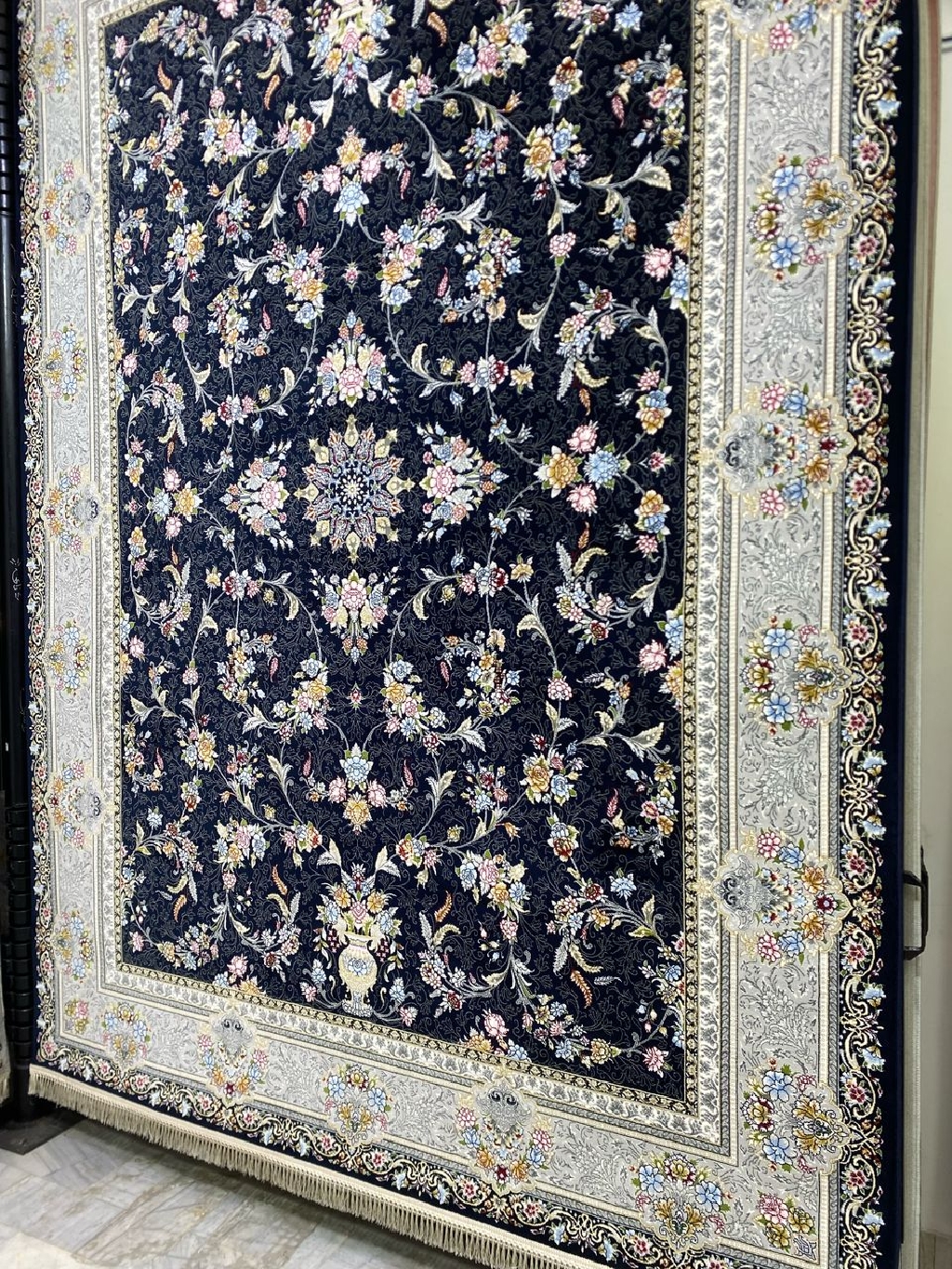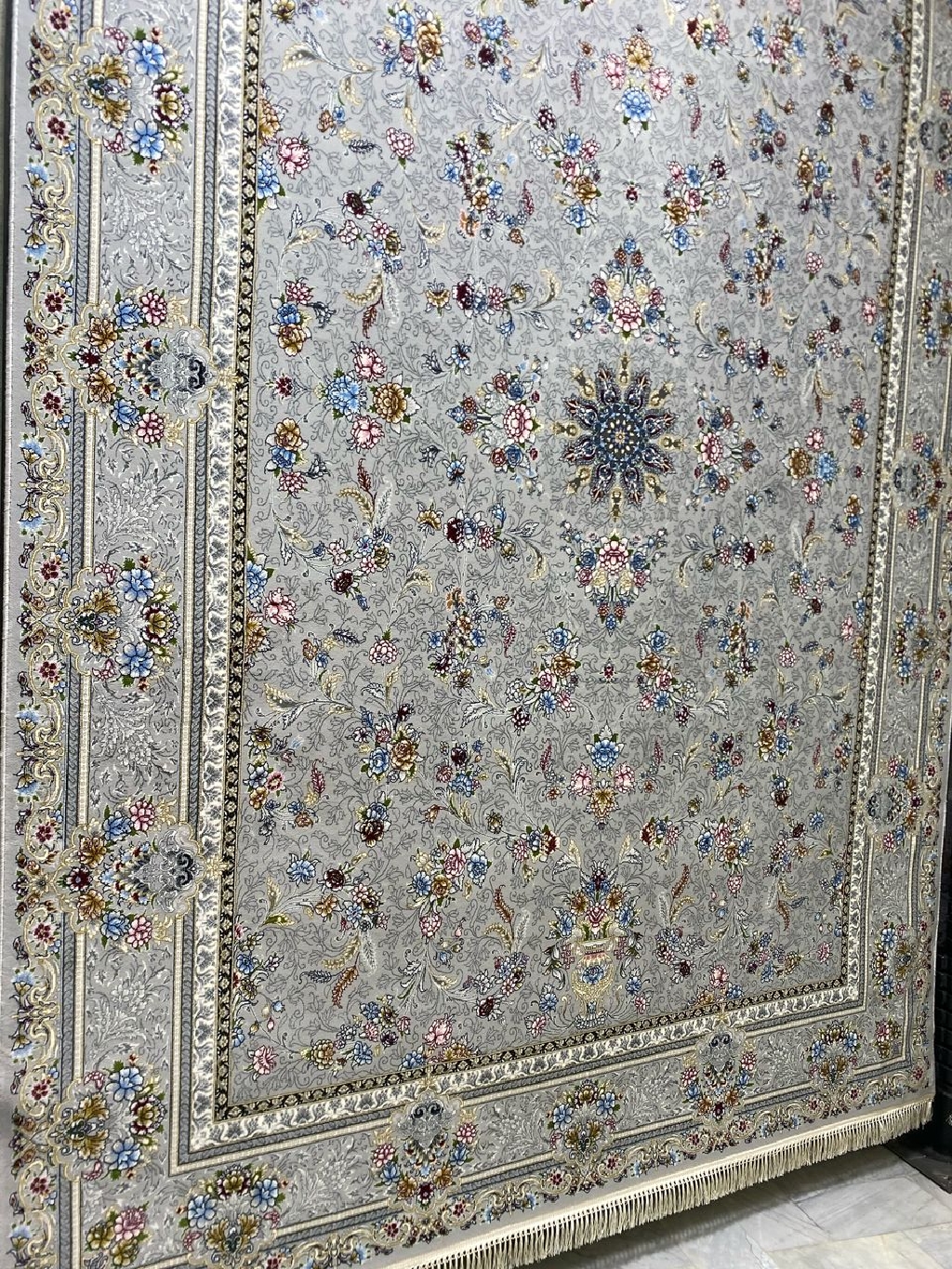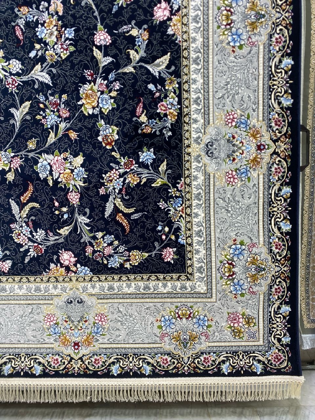 افزایش جلوه و شکوه دکوراسیون منزلتان با فرش ماشینی ۷۰۰ شانه اصل نقشه کارن سرمهای نقرهای. این فرش بافتی زیبا و با دوام دارد که تلفیقی از هنر و کیفیت است. رنگهای سرمهای و نقرهای آن به فضای شما عمق و ابهتی بینظیر میبخشند. اکنون خرید کنید و به خانهتان حس تازگی و جذابیت بیاورید!