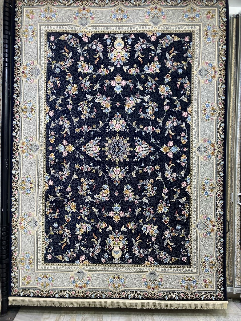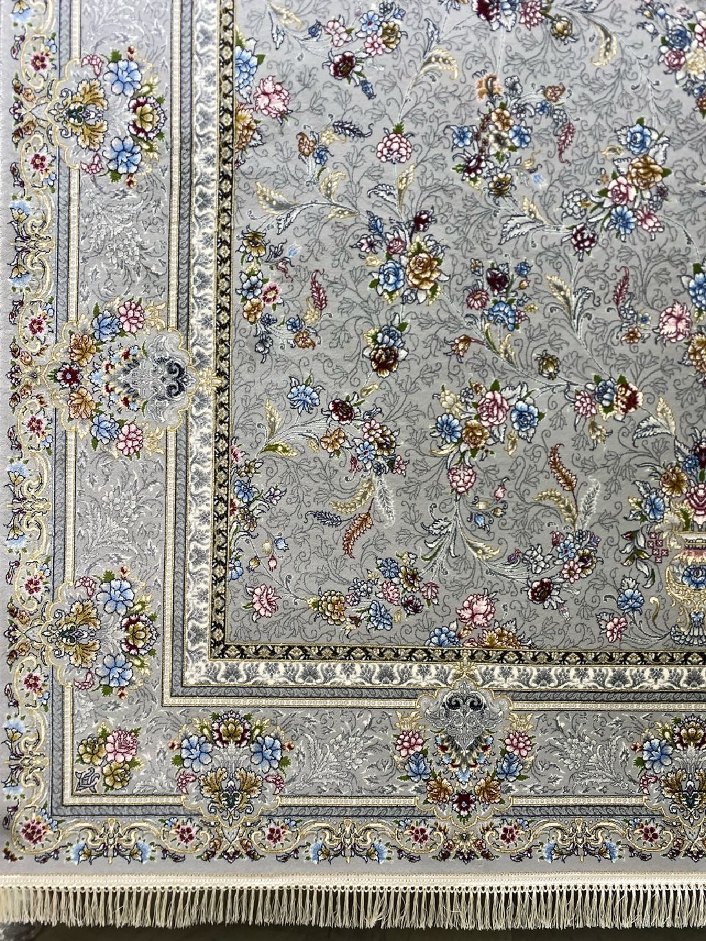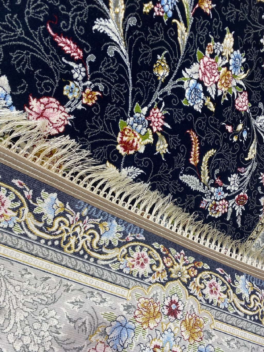 افزایش جلوه و شکوه دکوراسیون منزلتان با فرش ماشینی ۷۰۰ شانه اصل نقشه کارن سرمهای نقرهای. این فرش بافتی زیبا و با دوام دارد که تلفیقی از هنر و کیفیت است. رنگهای سرمهای و نقرهای آن به فضای شما عمق و ابهتی بینظیر میبخشند. اکنون خرید کنید و به خانهتان حس تازگی و جذابیت بیاورید!