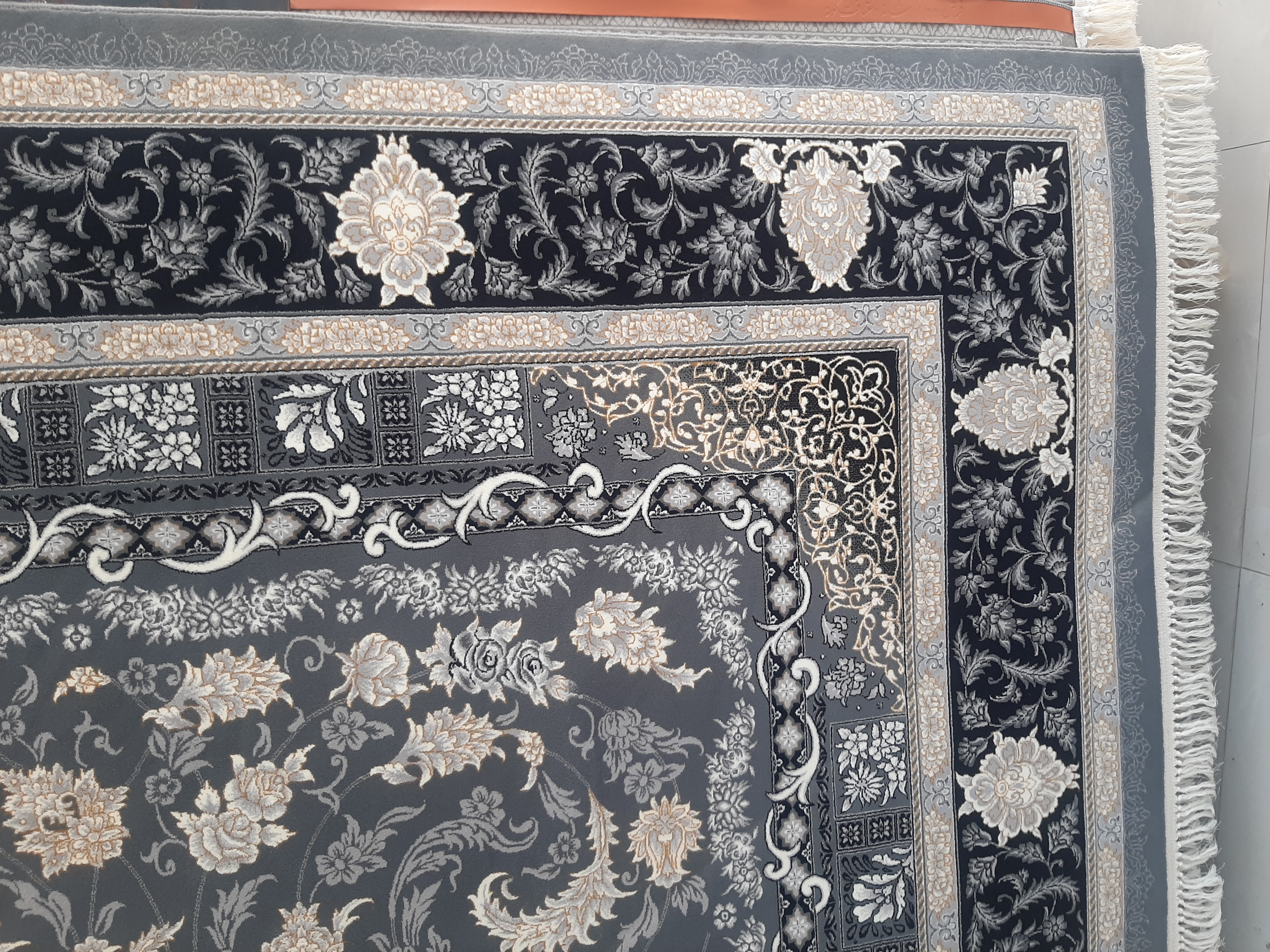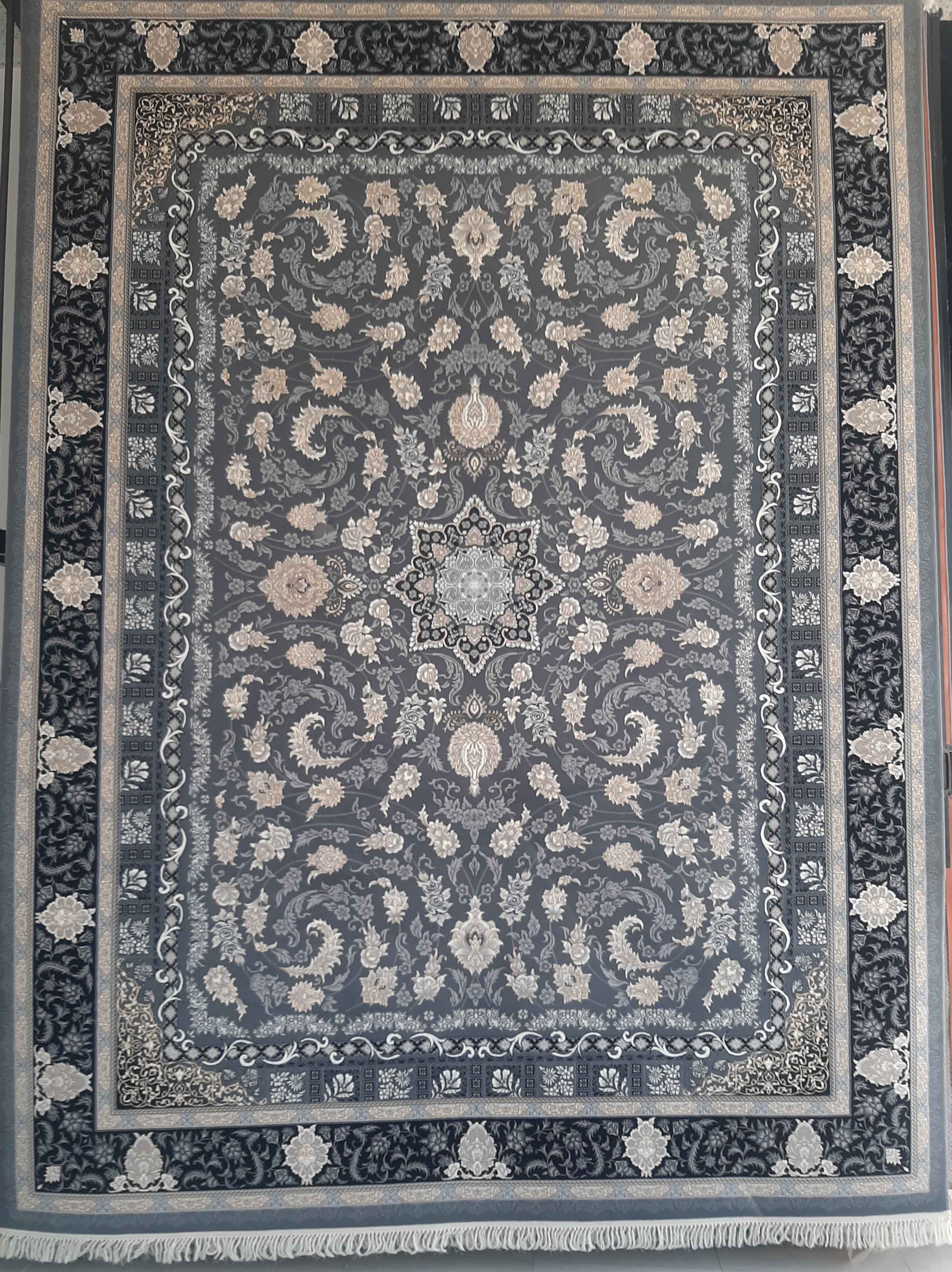 فرش ماشینی ۷۰۰ شانه اصل تراکم ۲۵۵۰ هشت رنگ، کد نقشه 22009، صددرصد نخ اکرولیک هیت ست شده با ۶۰ ماه ضمانت کیفیت و ضمانت مرجوعی کیفیت، بسیار باکیفیت، وزن ۱۲ متری محصول ۴۰ کیلوگرم می باشد. با ضمانت اتوی داغ، بافت با سه رنگ متنوع زمینه، فیلی - دودی - سرمه ای، ارسال پس کرایه