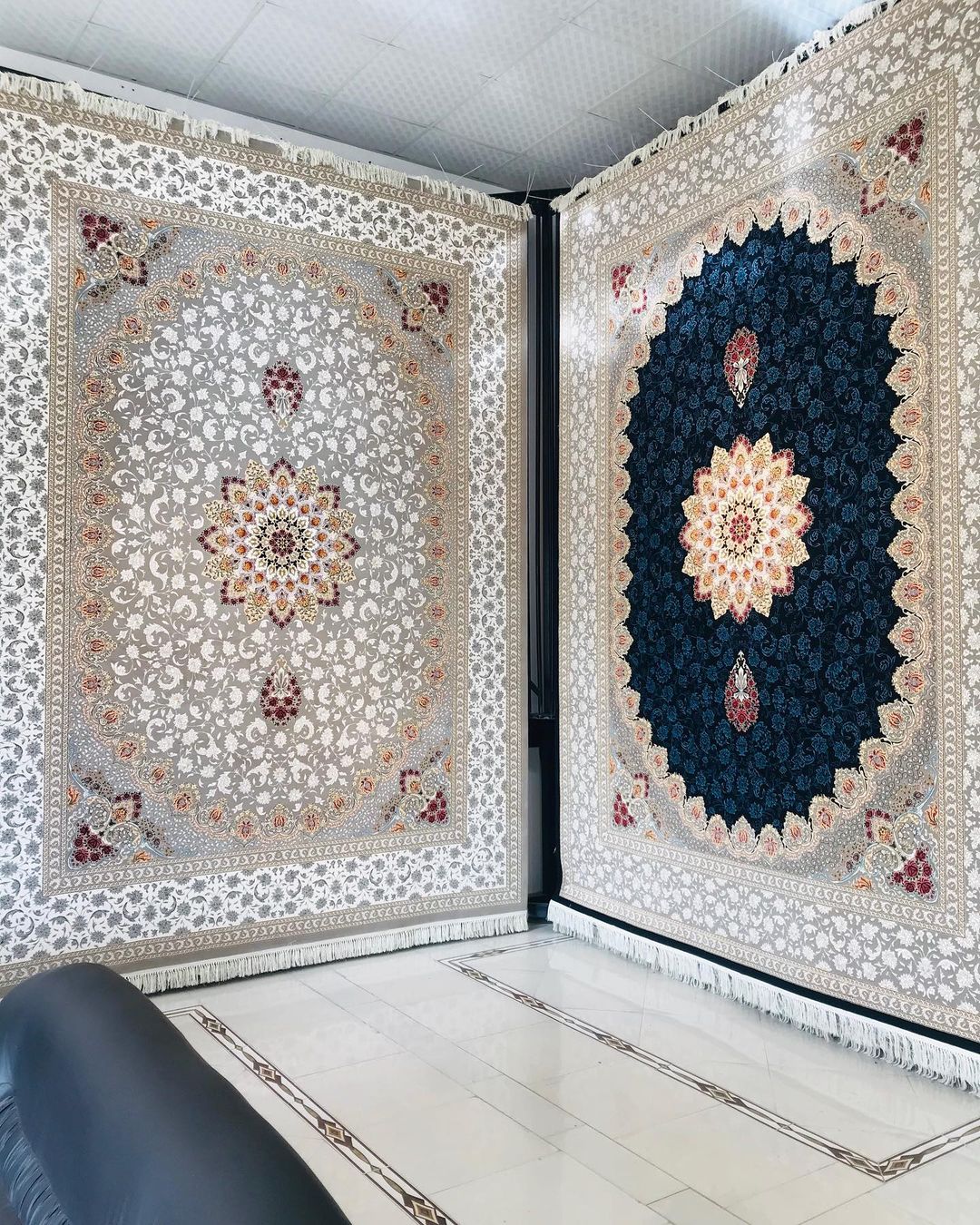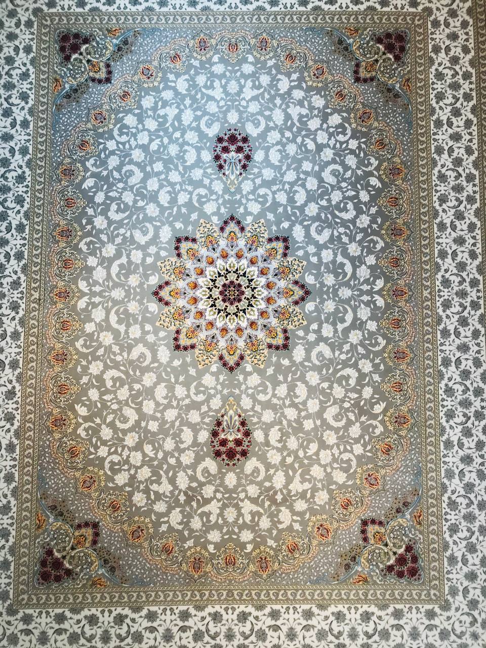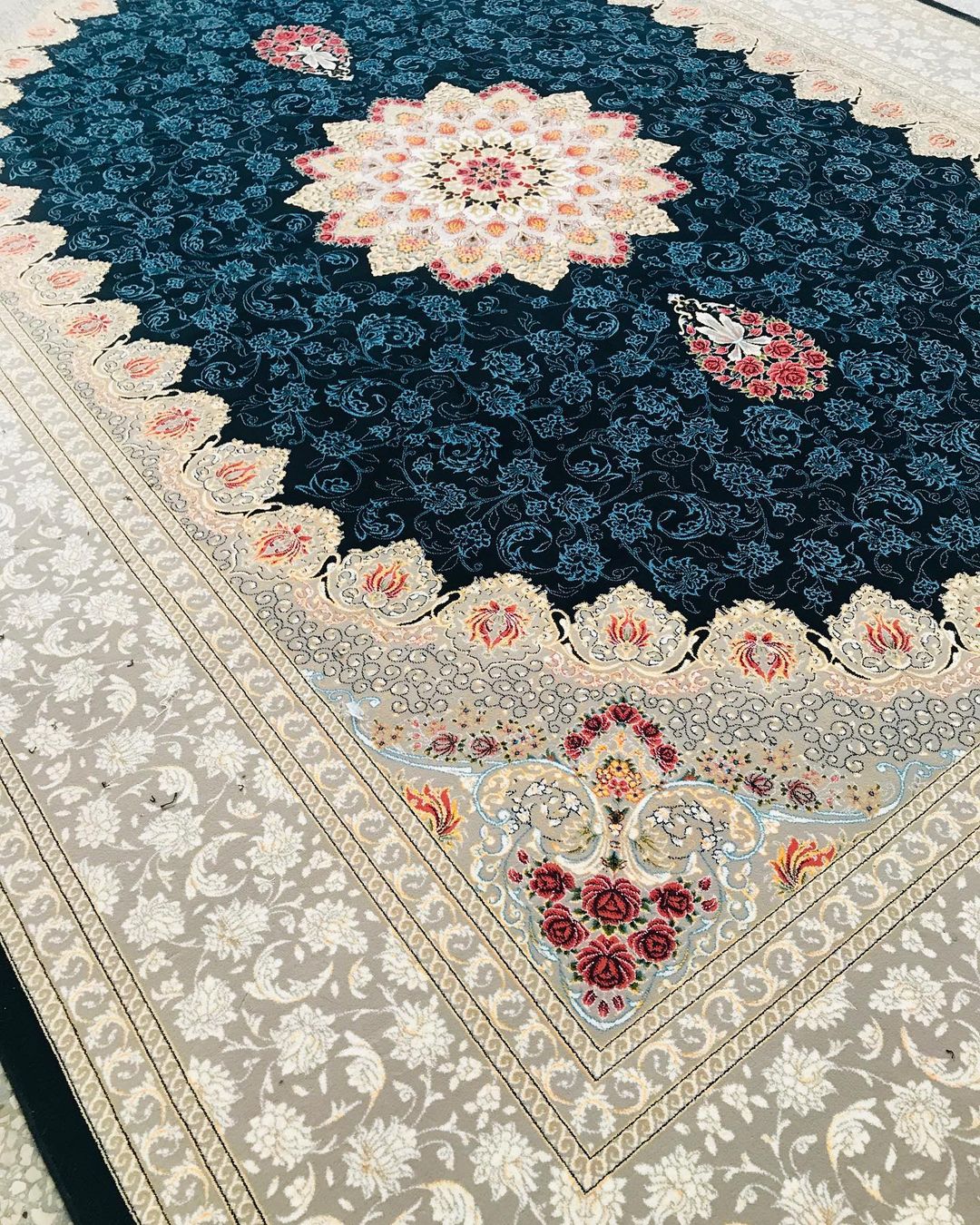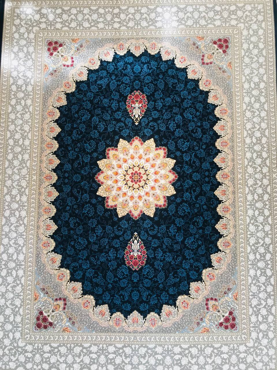 فرش ماشینی ۷۰۰ شانه اصل هشت رنگ، نقشه گیلدا فیلی، صددرصد نخ اکرولیک هیت ست شده با ۶۰ ماه ضمانت کیفیت و ضمانت مرجوعی کیفیت، بسیار باکیفیت، با ضمانت اتوی داغ، بافت با ۲ رنگ متنوع زمینه، فیلی - سرمه ای، ارسال پس کرایه