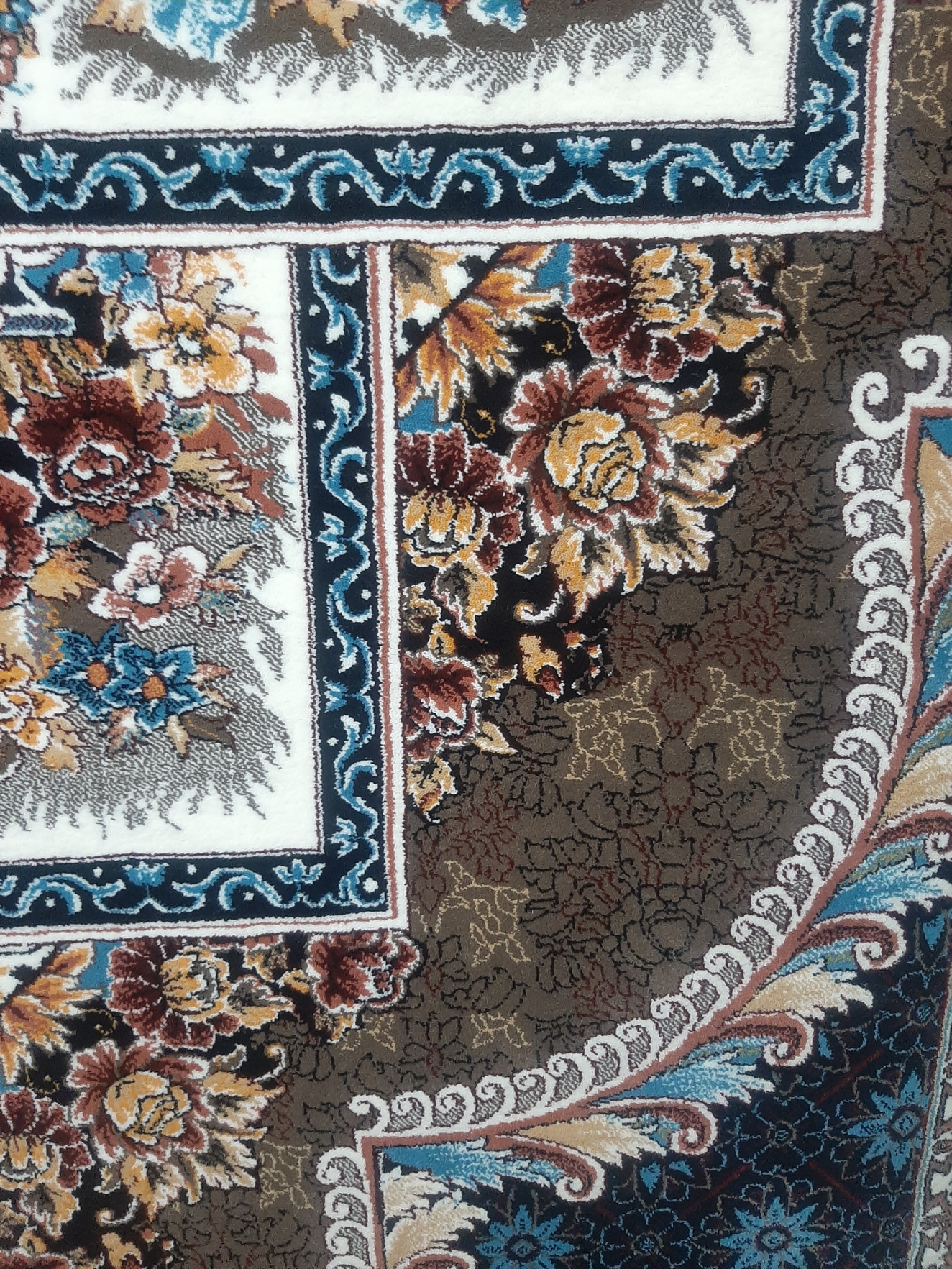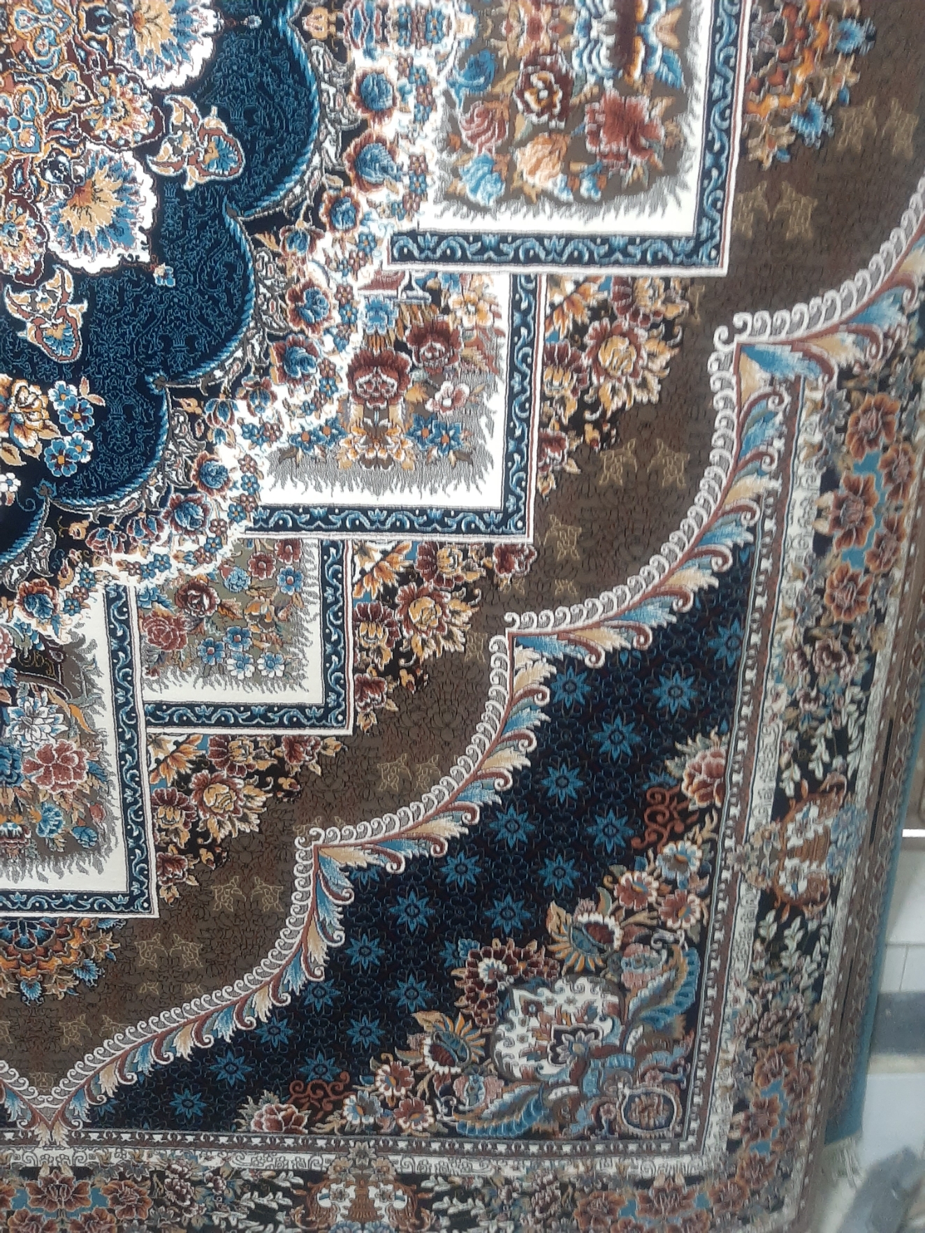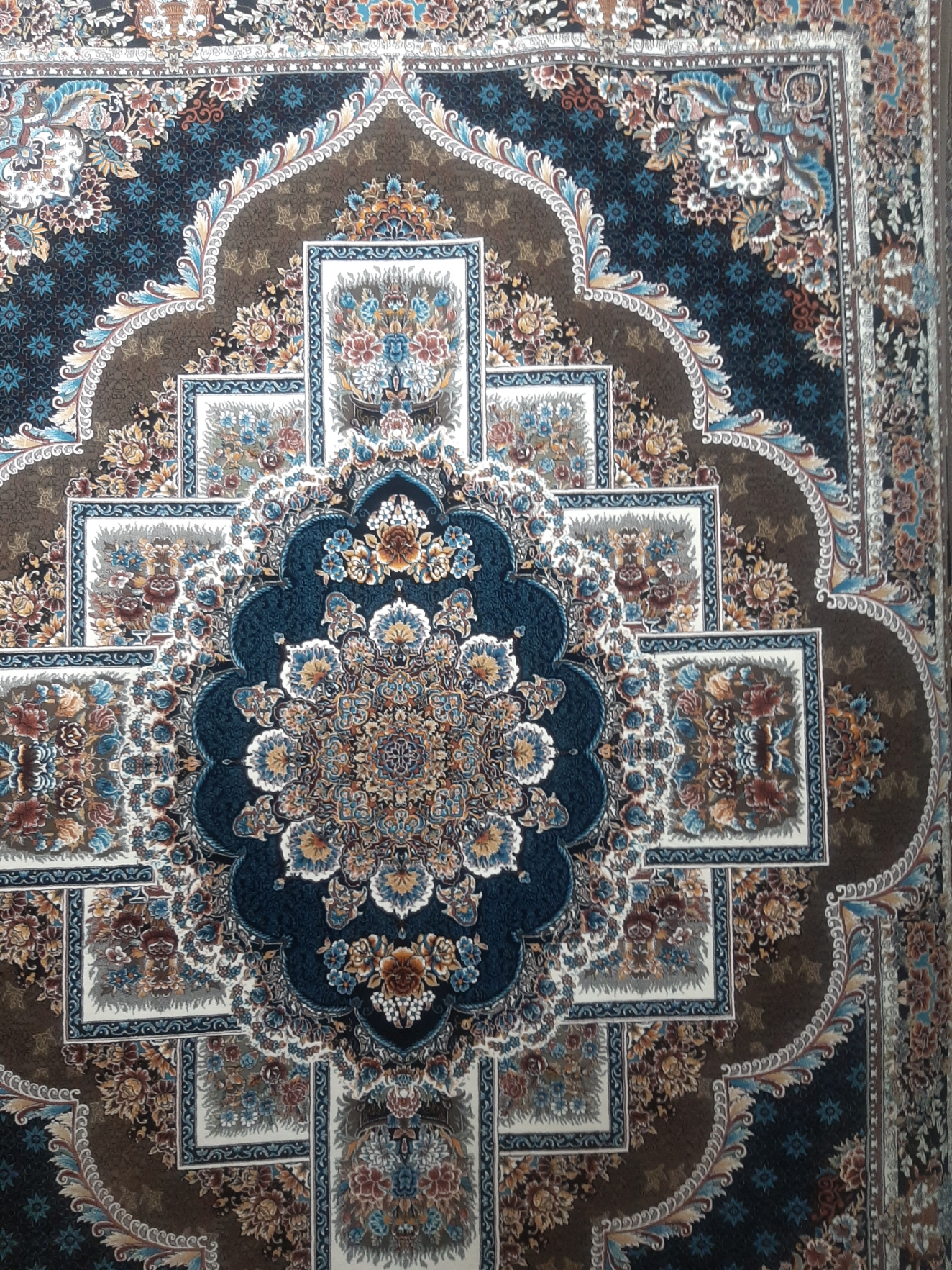 فرش ماشینی ۷۰۰ شانه اصل تراکم ۲۵۵۰ دست بافت گونه، نقشه ناردون گردویی هشت رنگ صددرصد نخ اکرولیک هیت ست شده با ۶۰ ماه ضمانت کیفیت و ضمانت مرجوعی کیفیت، بسیار باکیفیت، وزن ۱۲ متری محصول بالای ۴۰ کیلوگرم می باشد. با ضمانت اتوی داغ، بافت با ۳ رنگ متنوع زمینه، فیلی - سرمه ای- کرم، ارسال پس کرایه