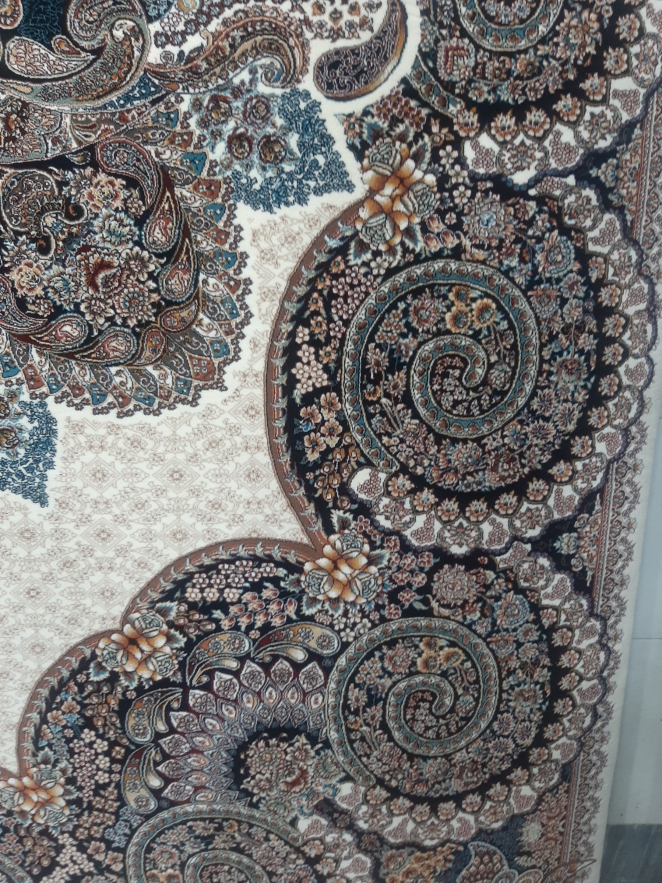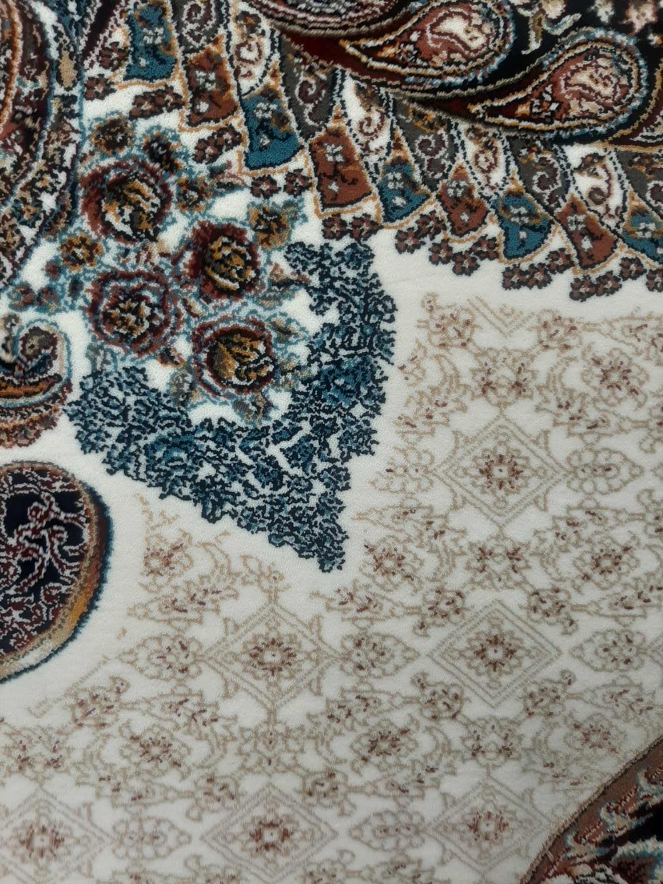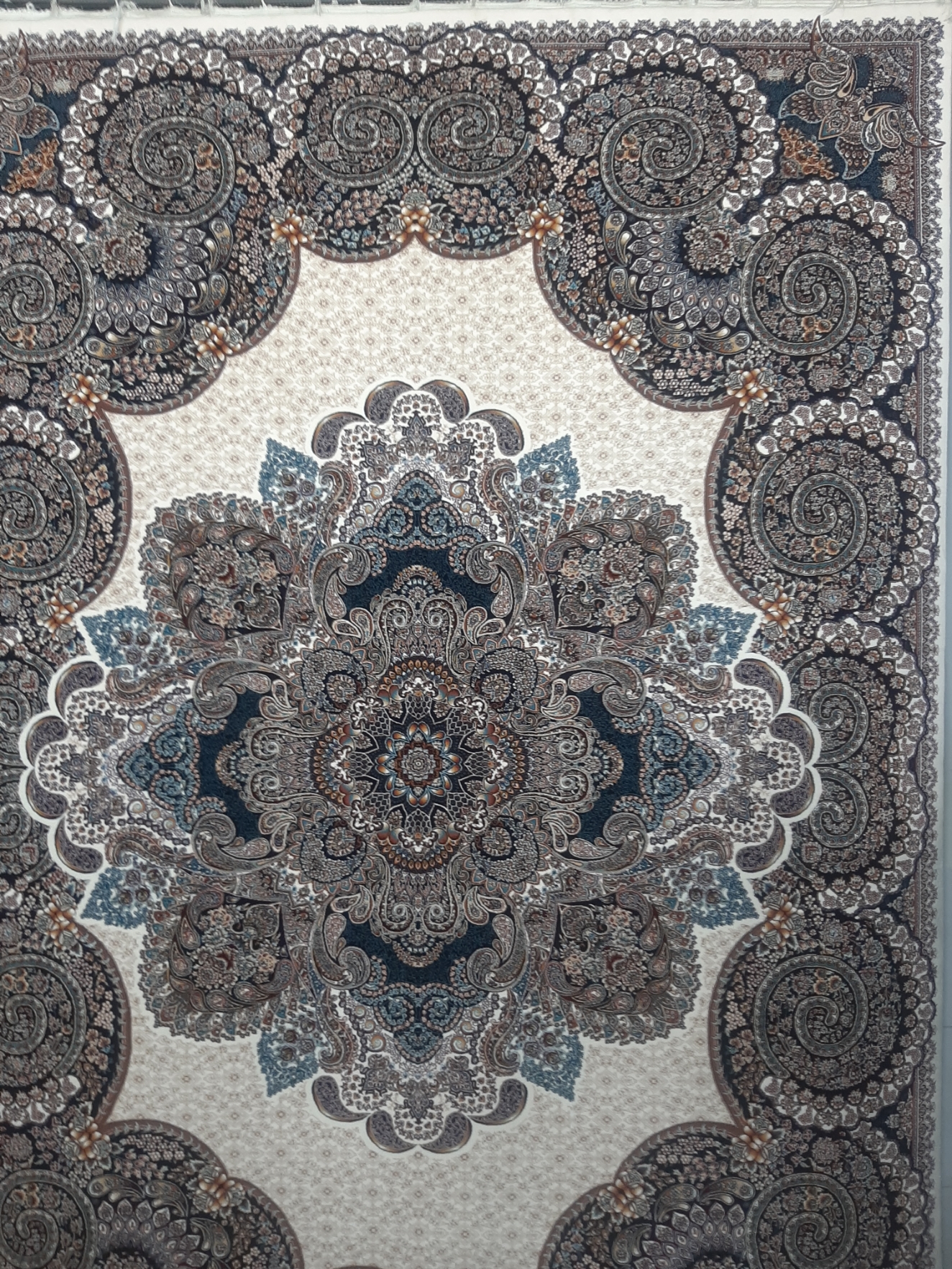 فرش ماشینی ۷۰۰ شانه اصل تراکم ۲۵۵۰ نقشه ونیز کرم هشت رنگ صددرصد نخ اکرولیک هیت ست شده با ۶۰ ماه ضمانت کیفیت و ضمانت مرجوعی کیفیت، بسیار باکیفیت، وزن ۱۲ متری محصول بالای ۴۰ کیلوگرم می باشد. با ضمانت اتوی داغ، بافت با ۳ رنگ متنوع زمینه، فیلی - سرمه ای- کرم، ارسال پس کرایه
