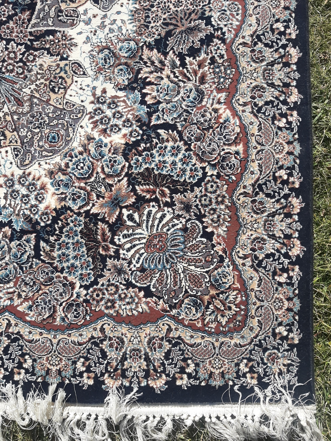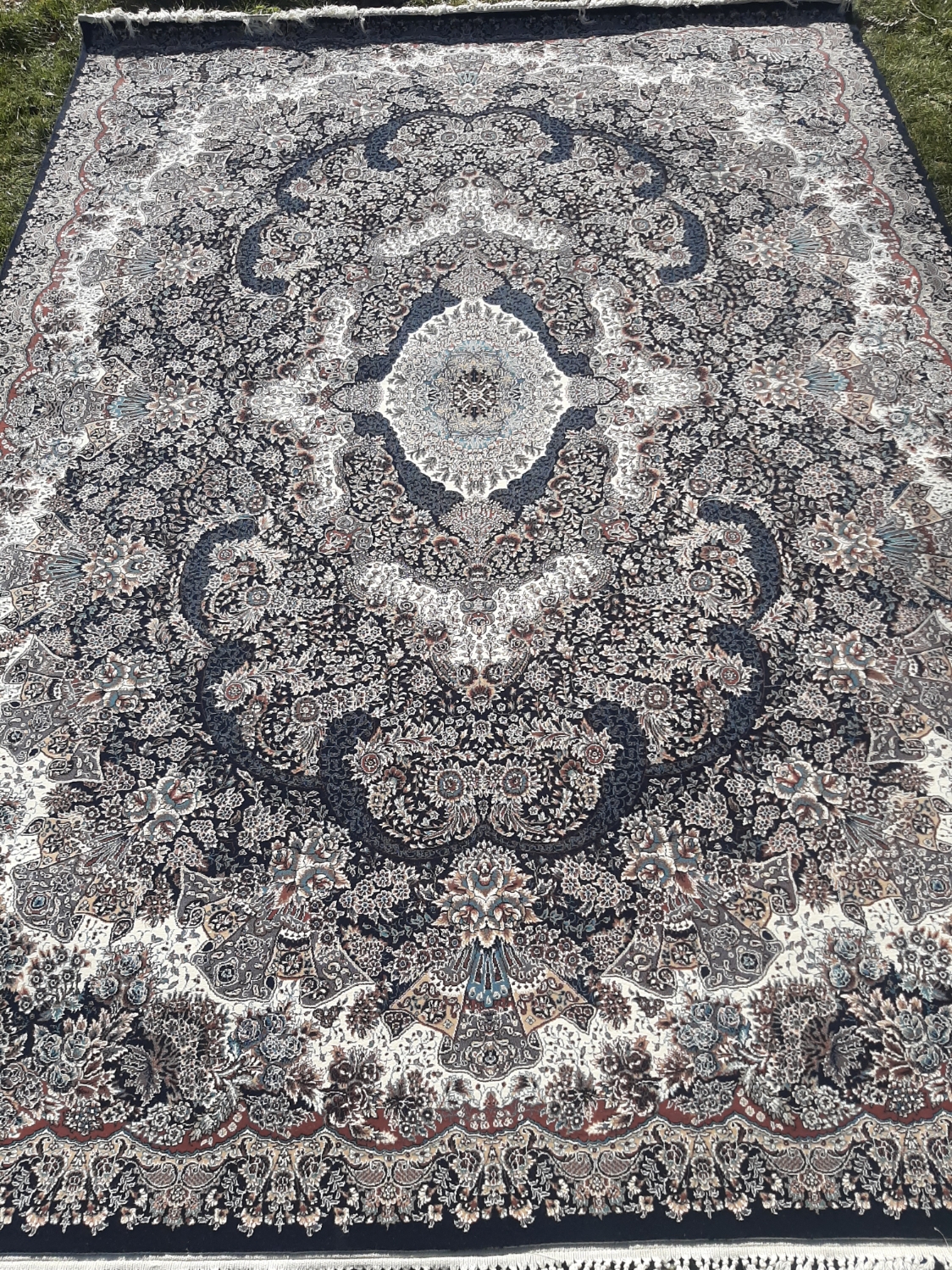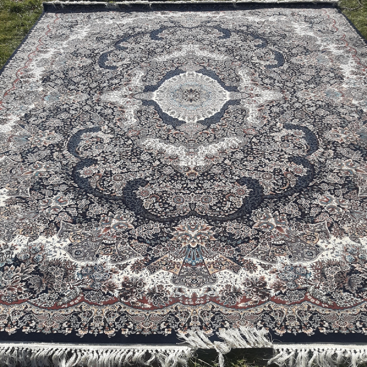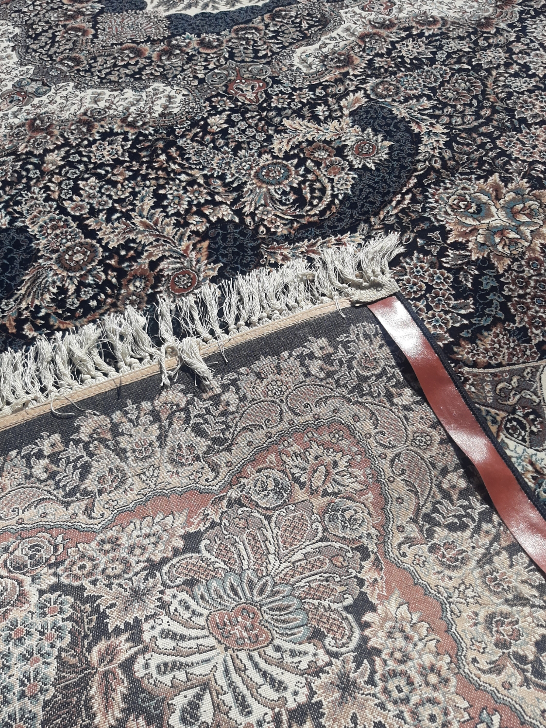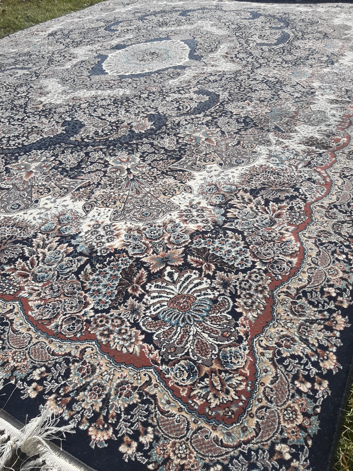 فرش ماشینی یک تخته 9 متری ۷۰۰ شانه اصل تراکم 2100 نقشه شیدا ( عروس ) سرمه ای شش رنگ صددرصد نخ اکرولیک هیت ست شده با ۶۰ ماه ضمانت کیفیت و ضمانت مرجوعی کیفیت، بسیار باکیفیت، وزن ۱۲ متری محصول بالای ۴۰ کیلوگرم می باشد. با ضمانت ۱۰ دقیقه اتوی داغ، بافت با ۳ رنگ متنوع زمینه، فیلی - سرمه ای- کرم، ارسال پس کرایه