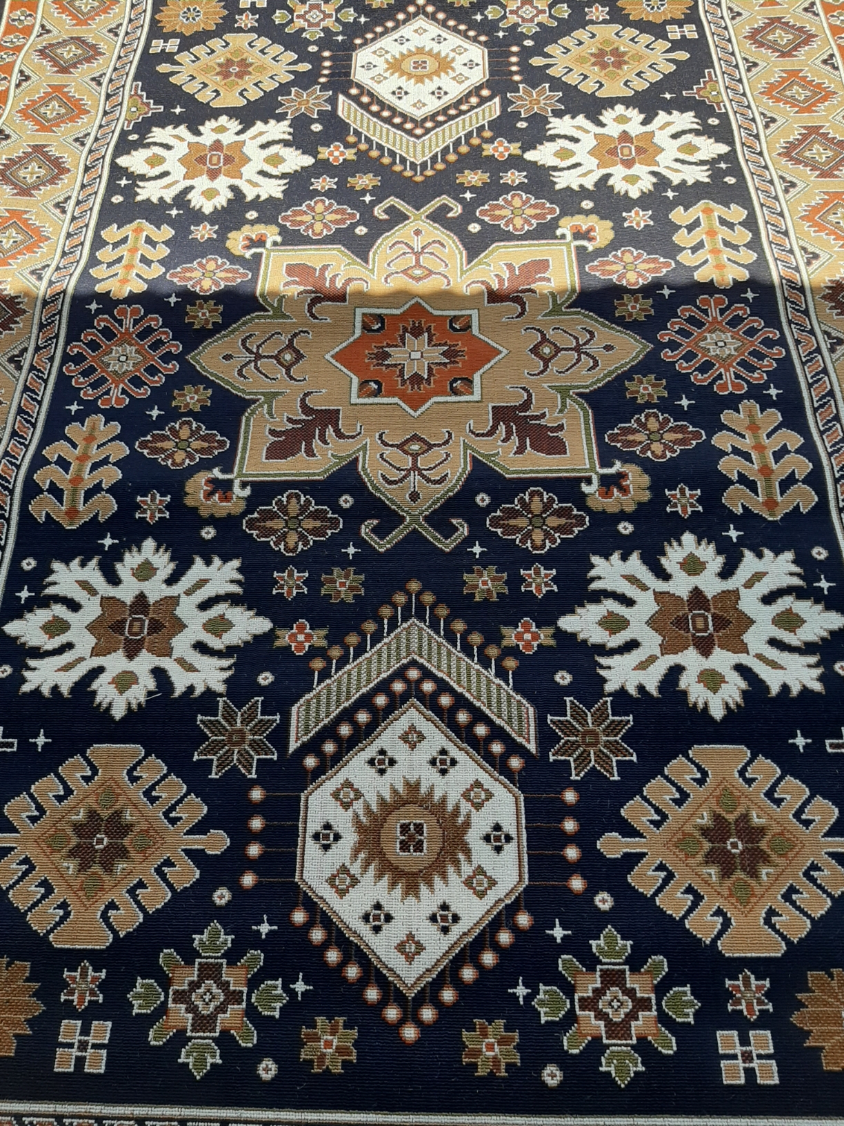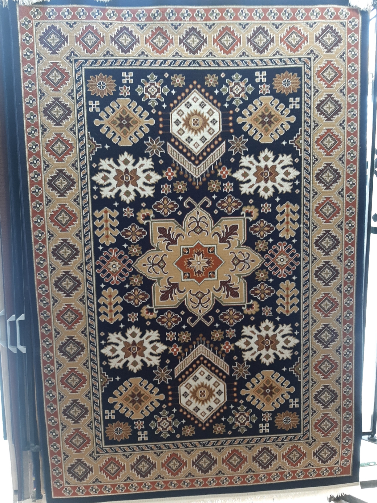گلیم ۳۲۰ شانه مناسب آشپزخانه و پاگرد سایز یک در یک و نیم متر مستطیلی رنگ سورمه ای باکیفیت بالا، ارسال پس کرایه